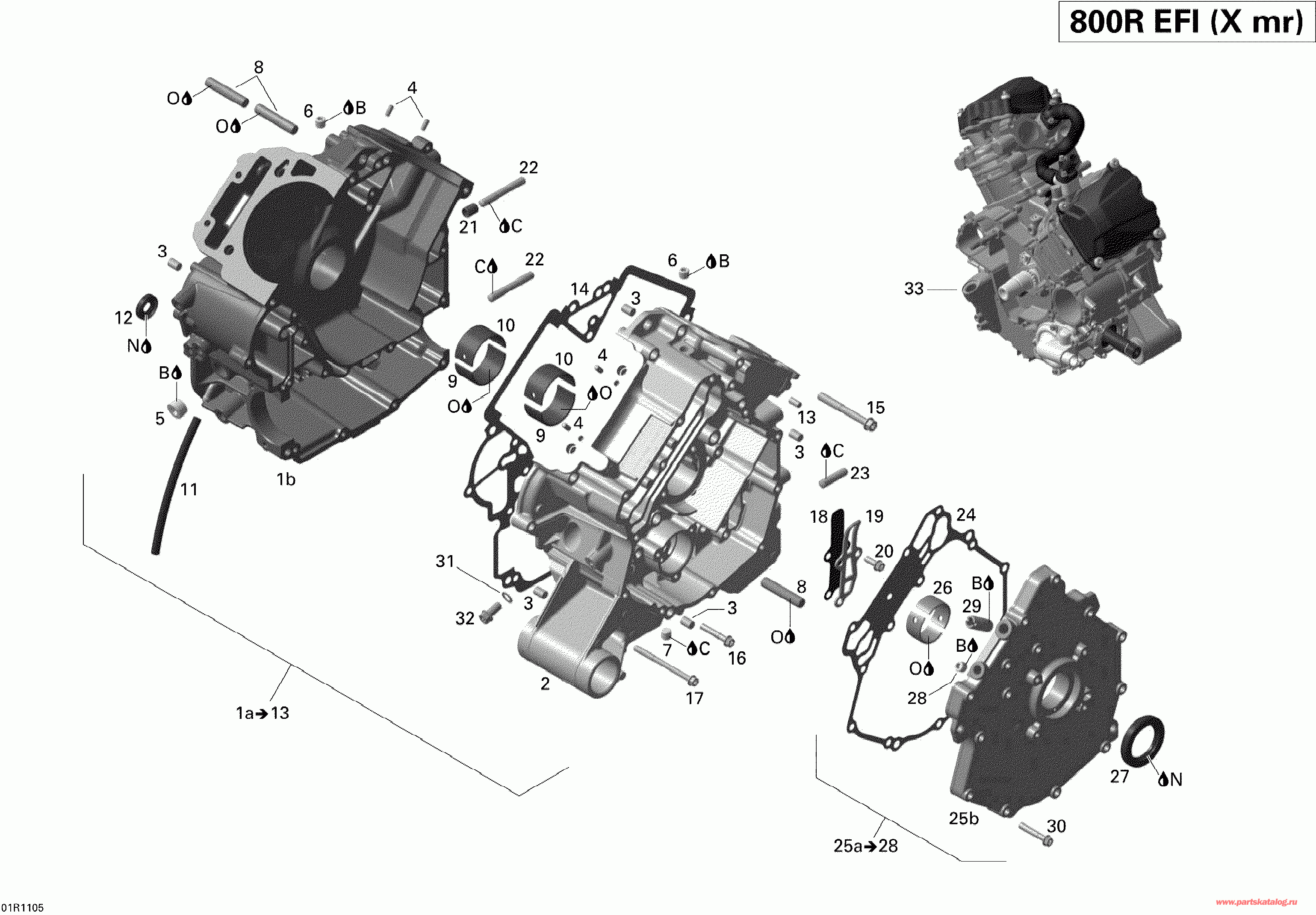 | 1a | 420685313 | Картер двигателя в сборе. Includes 1a to 13 (Crankcase Assy. Includes 1a to 13) | под заказ | 100600 руб. | |