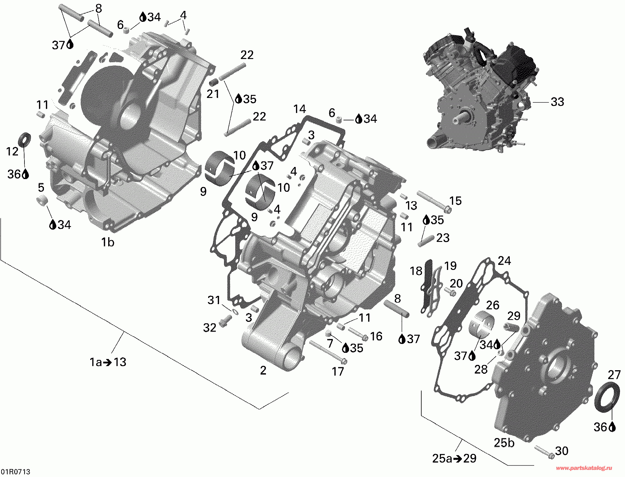 | 1a | 420685313 | (последний код) Картер двигателя в сборе. Includes 1a to 13 (Crankcase Assy. Includes 1a to 13) | под заказ | 100600 руб. | |