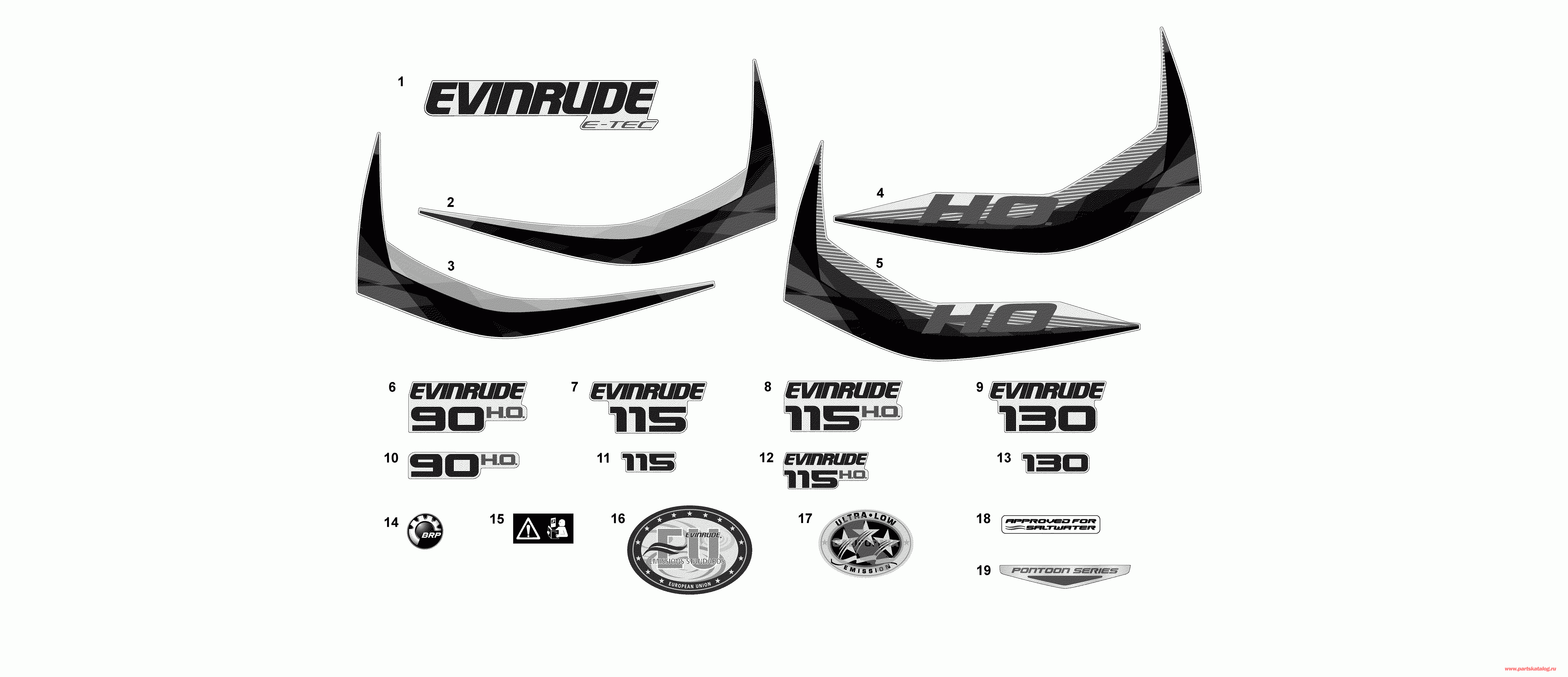 Подвесной двигатель Эвинруд E130DSLAFH  - Наклейки