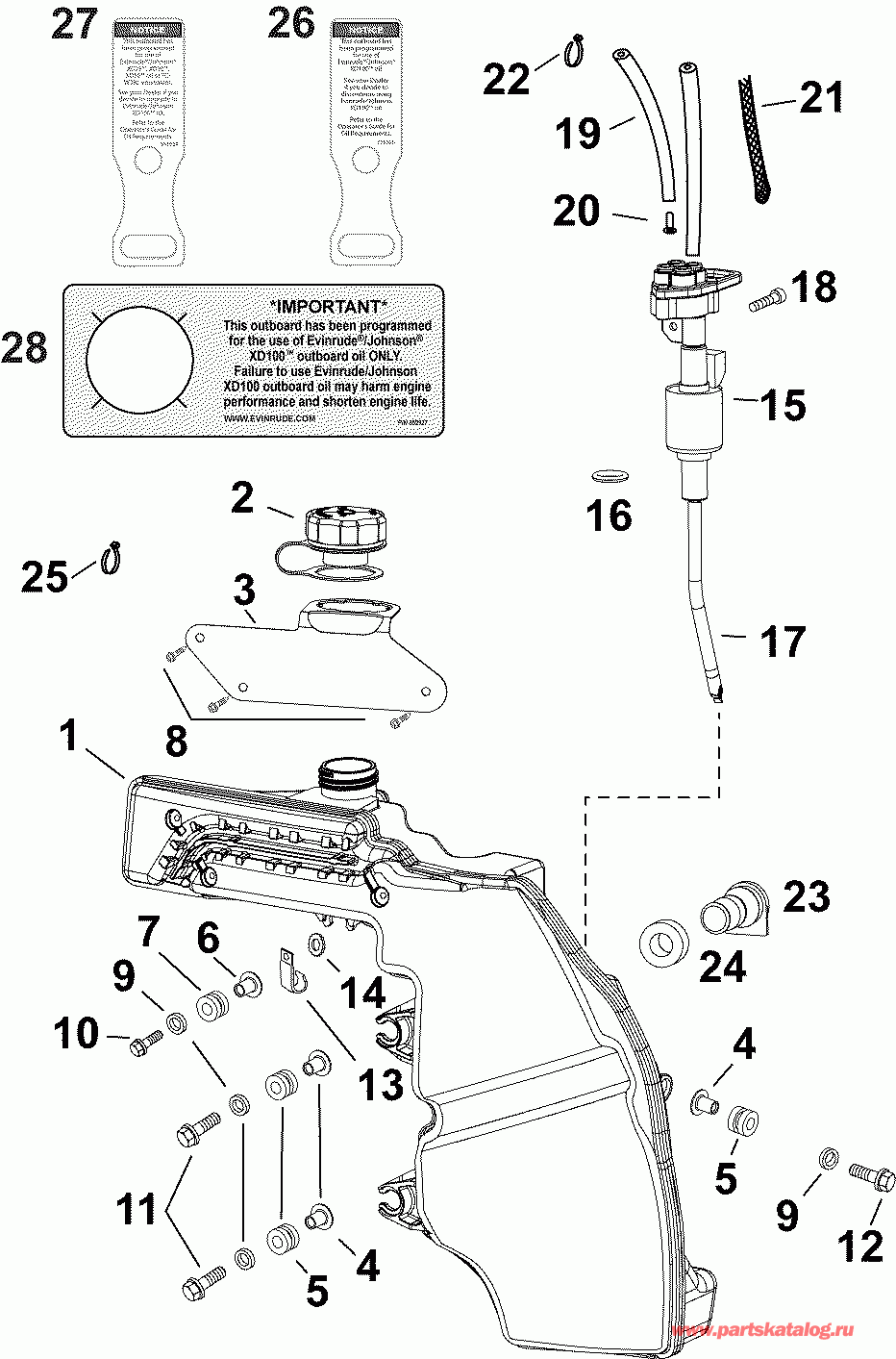 Evinrude E50DRMLAFB  - Масляный бак & Помпа / oil Tank & Pump