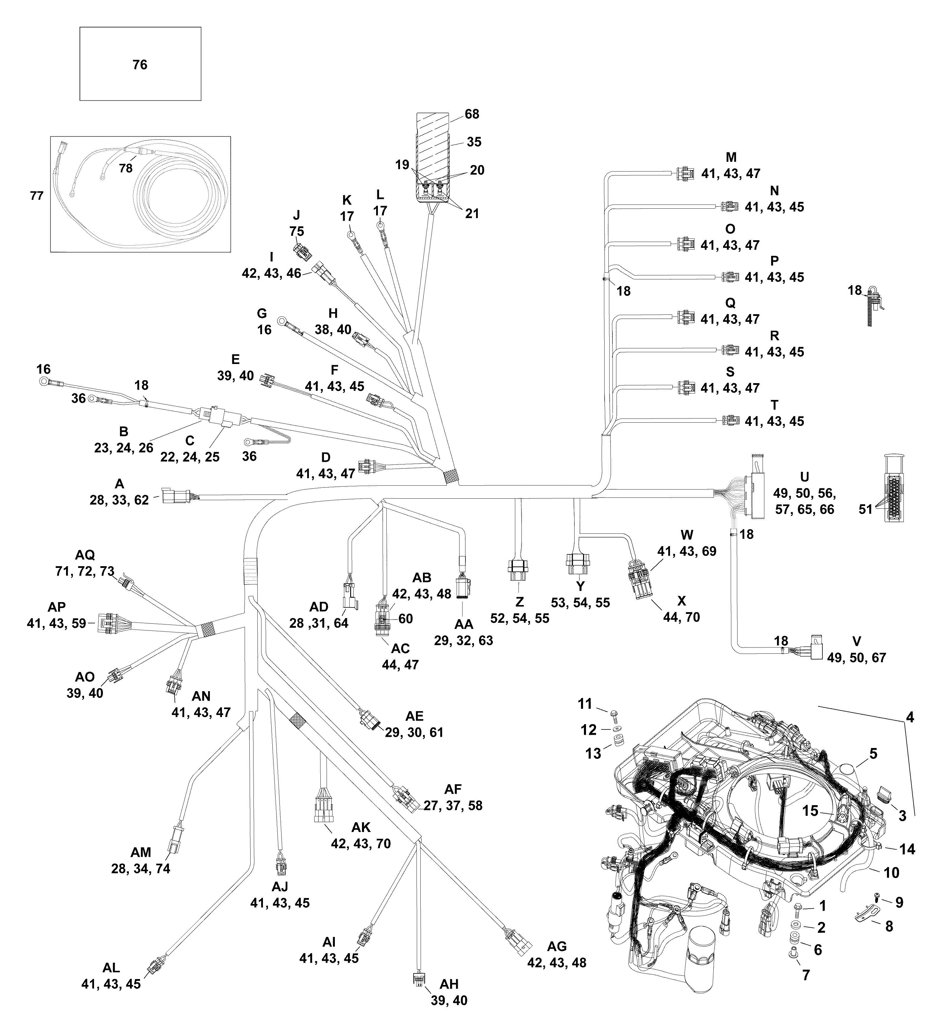 Двигатель Эвинруд E115DHXABA  - Электрика - жгут проводов / electrical Harness