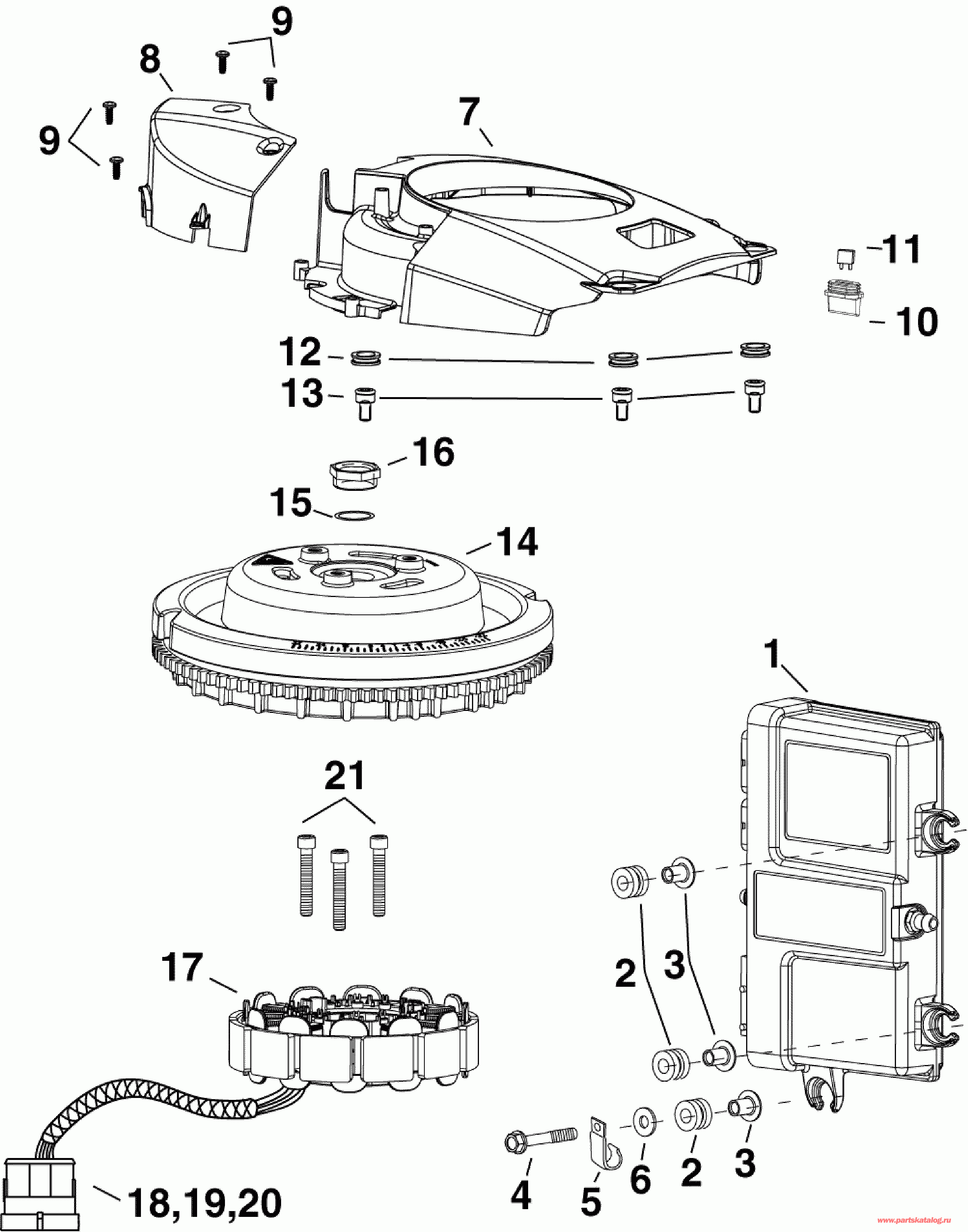 02-3 EMM, СТАТОР, МАХОВИК | 02-3 EMM, STATOR, FLYWHEEL;
