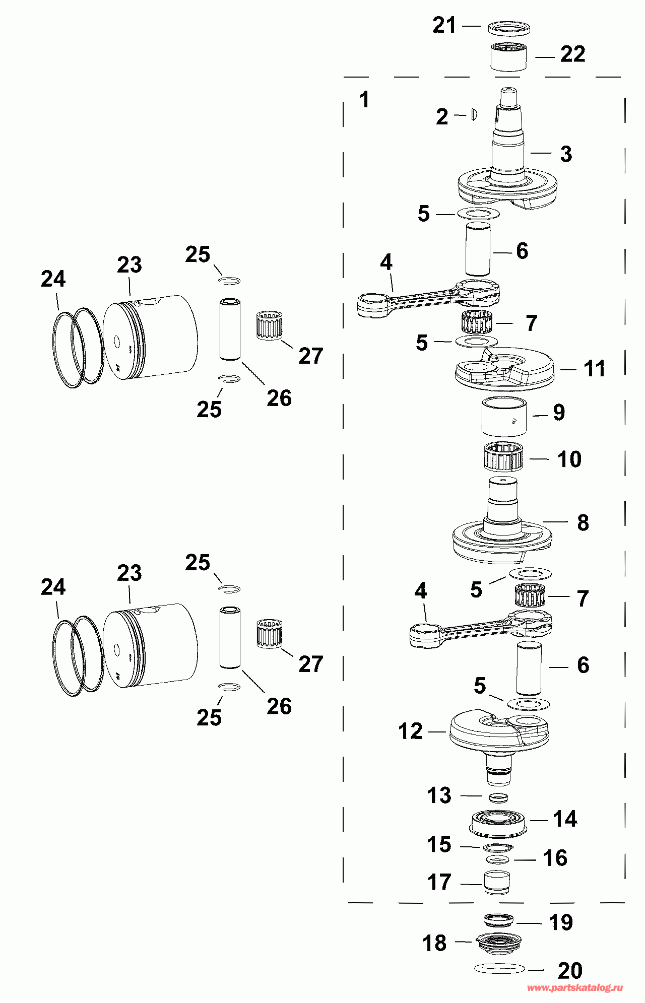 Двигатель EVINRUDE E25DTLABA  - Коленвал & Поршни / crankshaft & Pistons