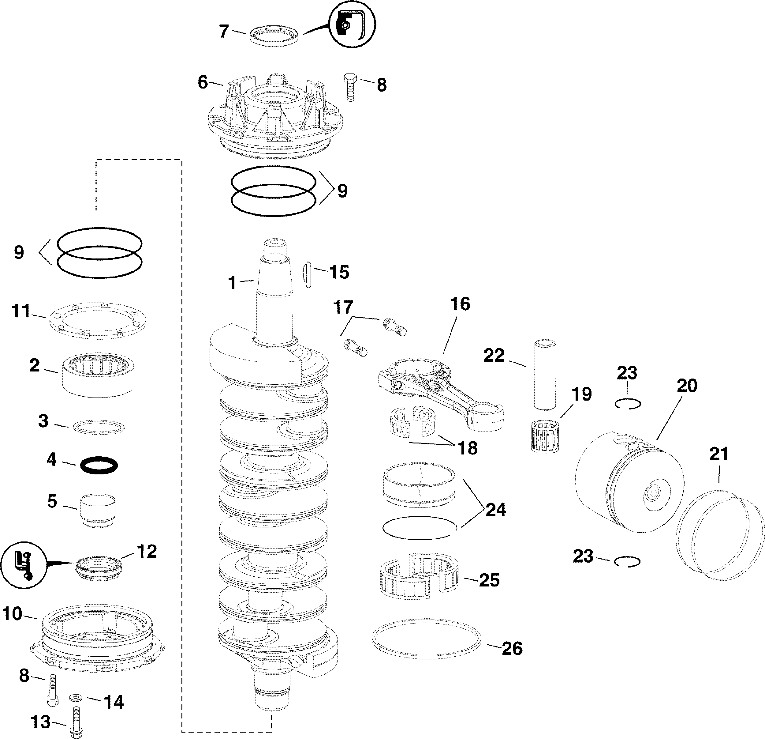 Подвесной лодочный мотор EVINRUDE E300DCXAAA  - crankshaft & Pistons / Коленвал & Поршни