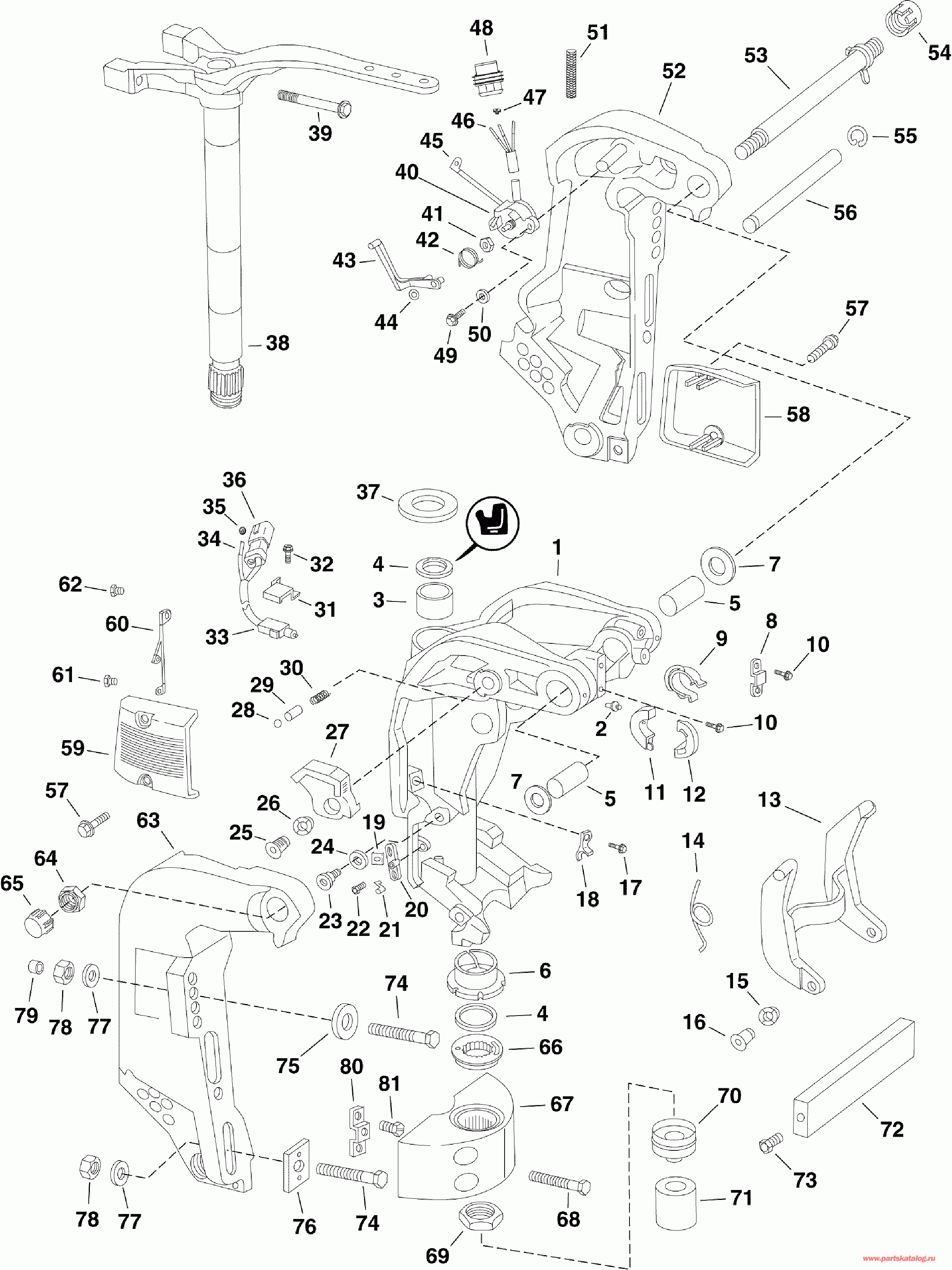 Крышка, Кронштейн транца, Starboard (COVER, Stern bracket, Starboard)