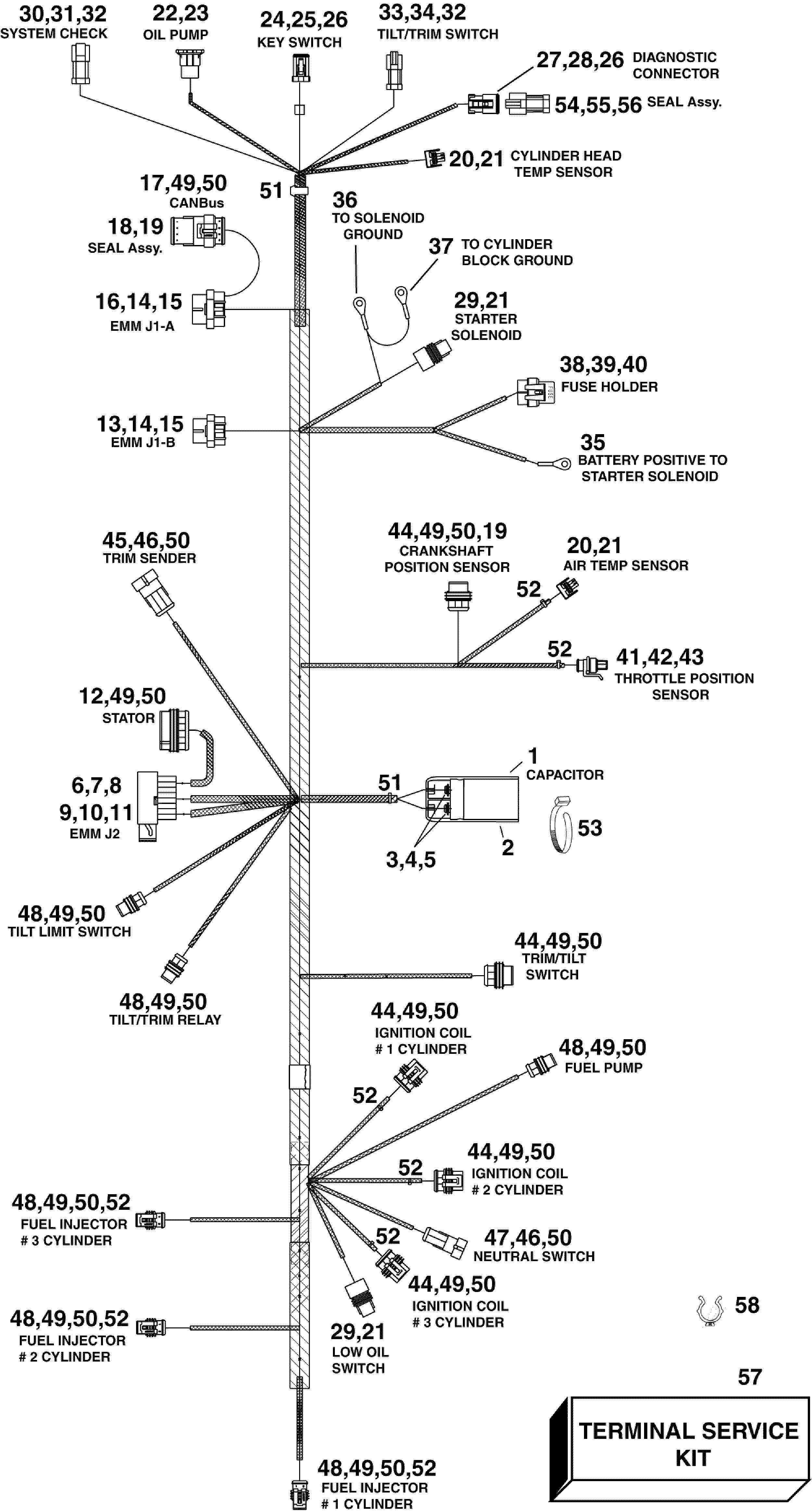 Подвесной мотор EVINRUDE E90DSLISF  - gine Electrical Harness / gine Электрика - жгут проводов