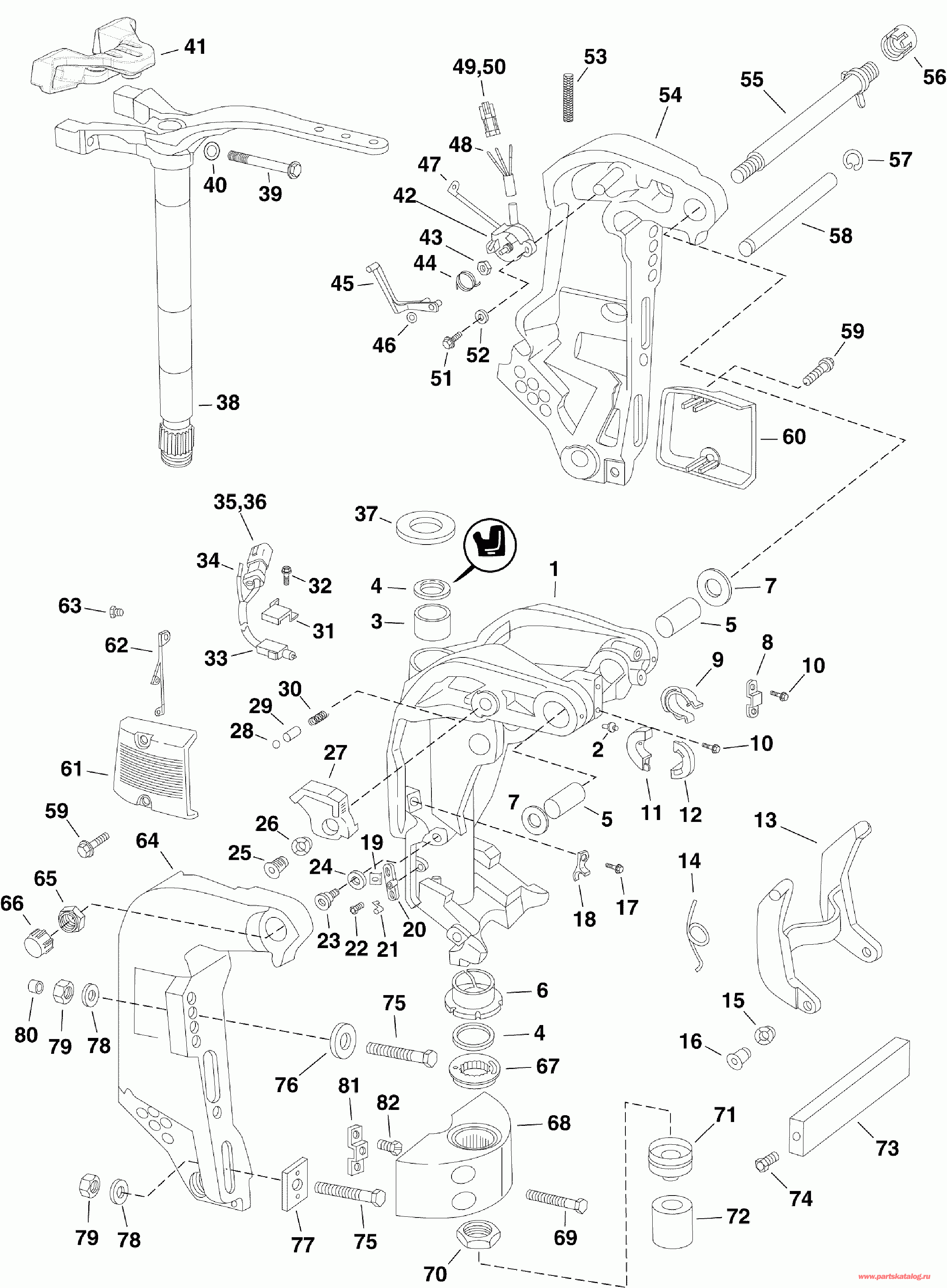 Крышка, Кронштейн транца, Starboard (COVER, Stern bracket, Starboard)