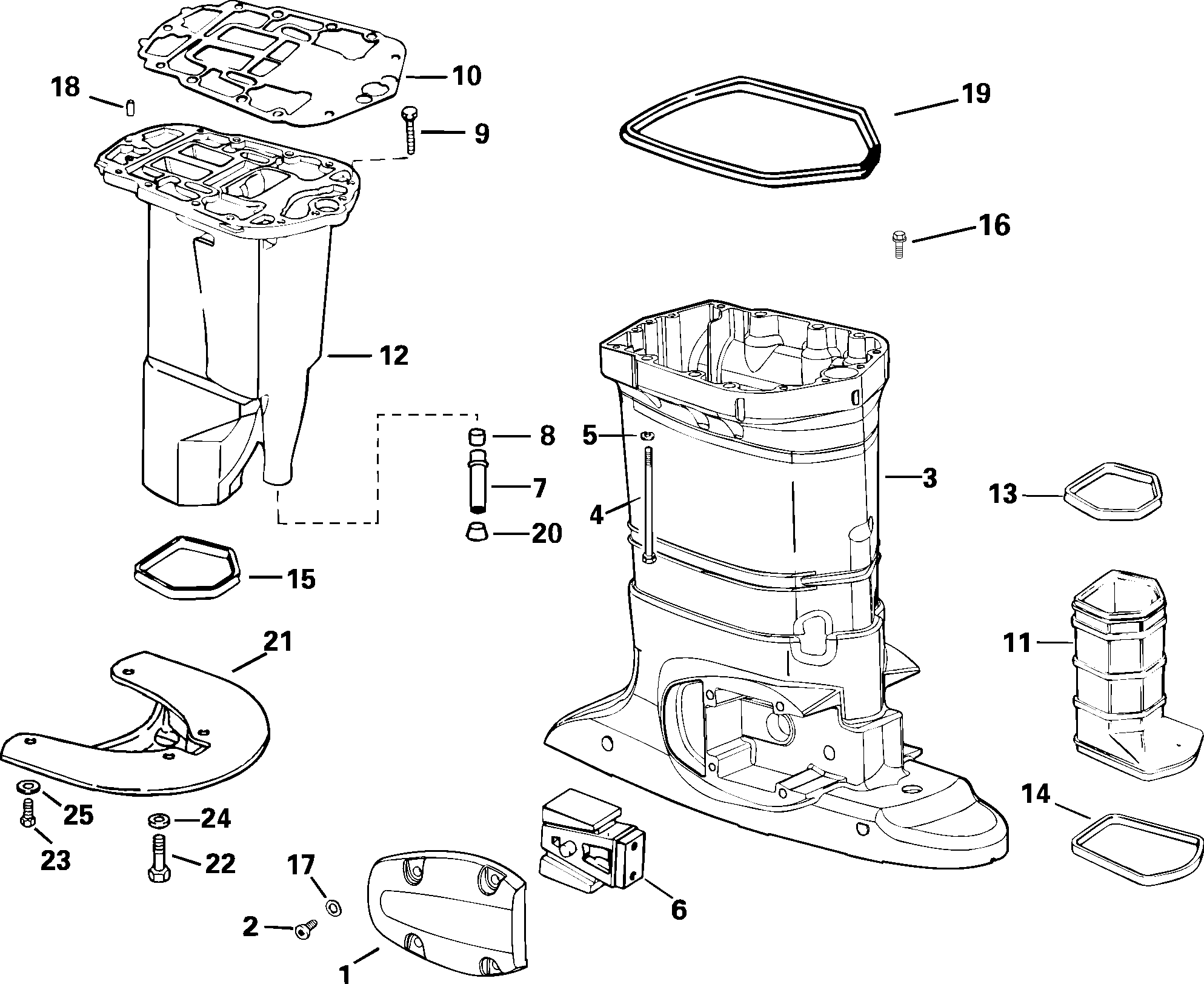 Лодочный мотор Эвинруд E150FSLSTD  - haust Корпус - haust Housing