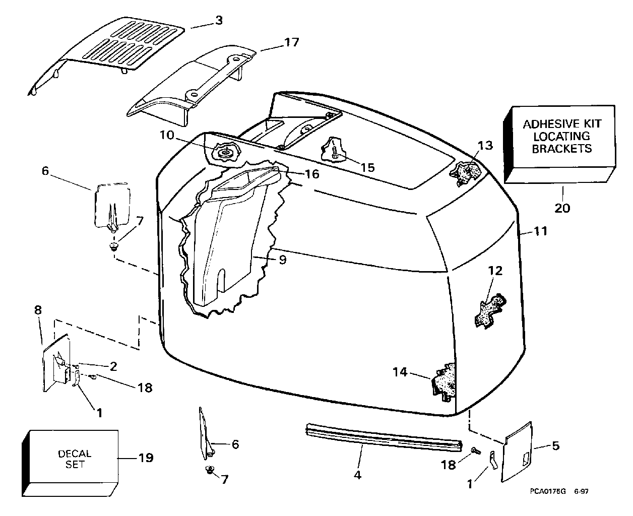 КРЫШКА ДВИГАТЕЛЯ (КАПОТ)-EVINRUDE-200TL, TX, CX, 225TX, CX, TZ, CZ, QX, NX, 250 | ENGINE COVER-EVINRUDE-200TL,TX,CX,225TX,CX,TZ;