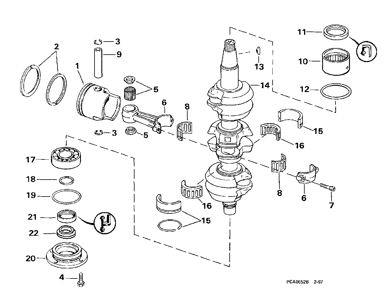 Подвесной двигатель Evinrude BE70ELECB 1998  - ankshaft & Piston - ankВал & Поршень