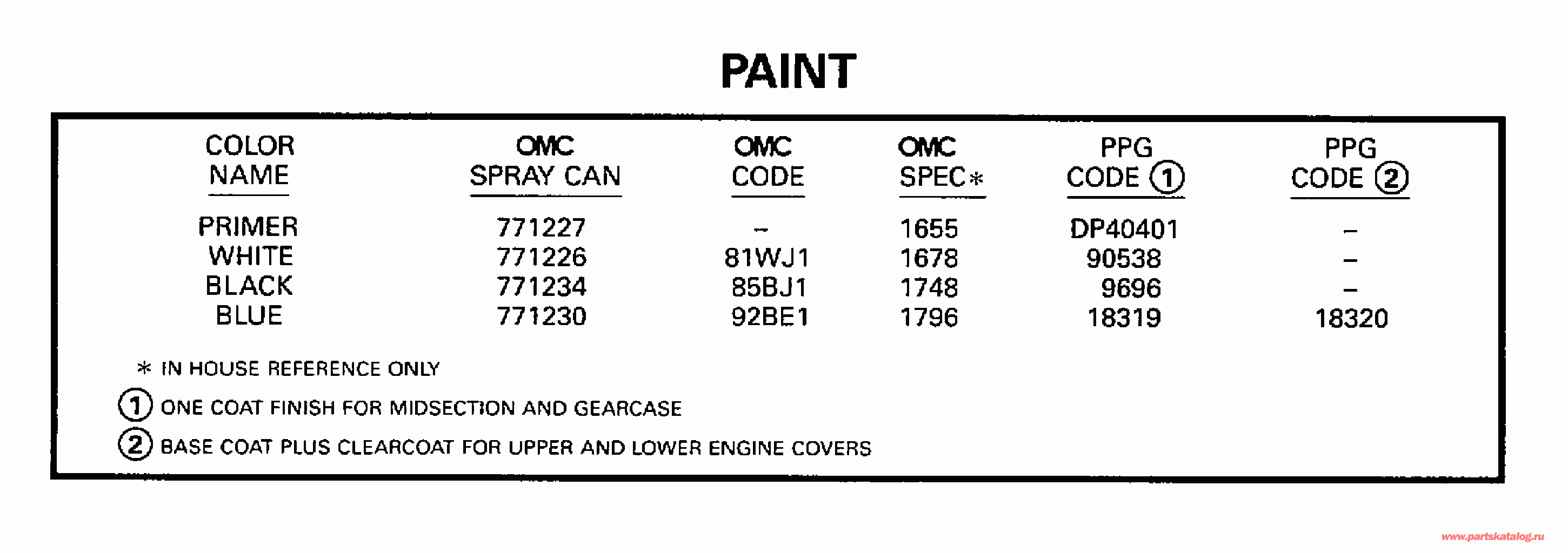 Все разделы каталога запчастей на этот двигатель вернуться к списку узлов и деталей ДЕТАЛИРОВКА ДЛЯ МОДЕЛИ: EVINRUDE BE70TLECB 1998 КРАСКА | PAINT; ![]()