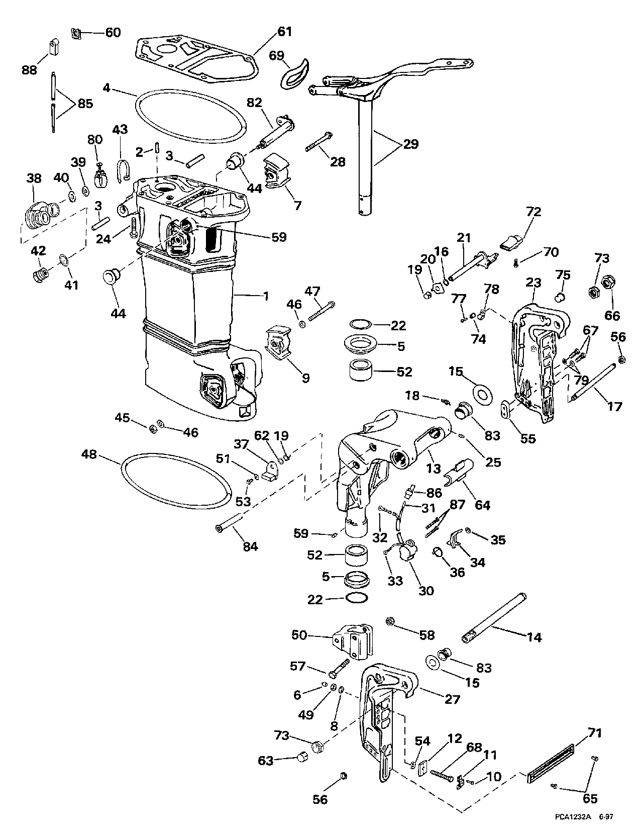 MIDSECTION -- МЕХАНИЗИРОВАННЫЙ ДИФФЕРЕНТ НАКЛОНА | MIDSECTION -- POWER TRIM & TILT;