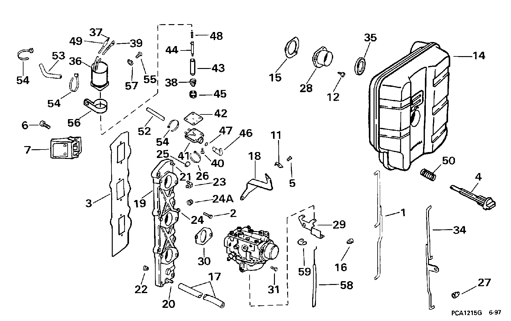 Двигатель Evinrude E25KLECA 1998  - take Manifold & Air Silencer - take Коллектор & Air Глушитель