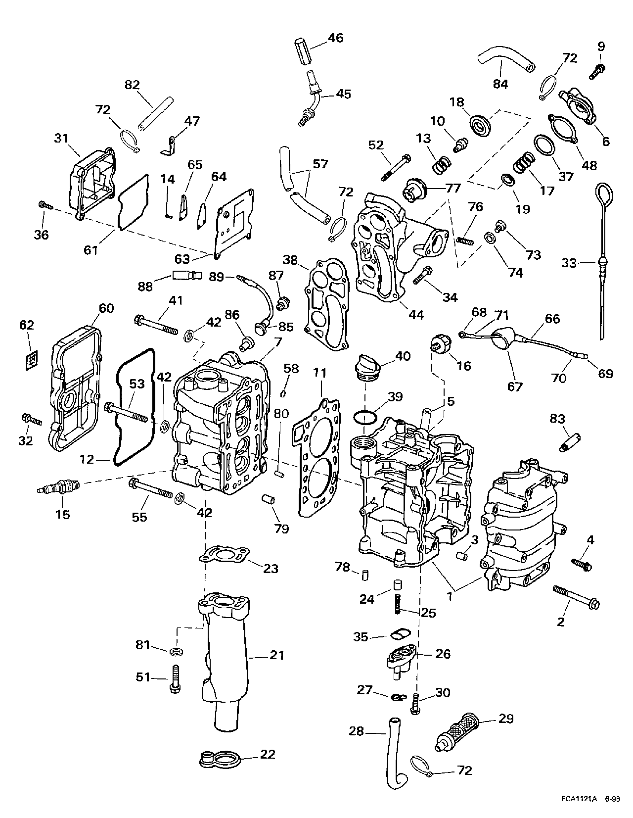Подвесной лодочный мотор Эвинруд HE10FTLEUR 1997  - linder & Crankcase / linder & Картер двигателя