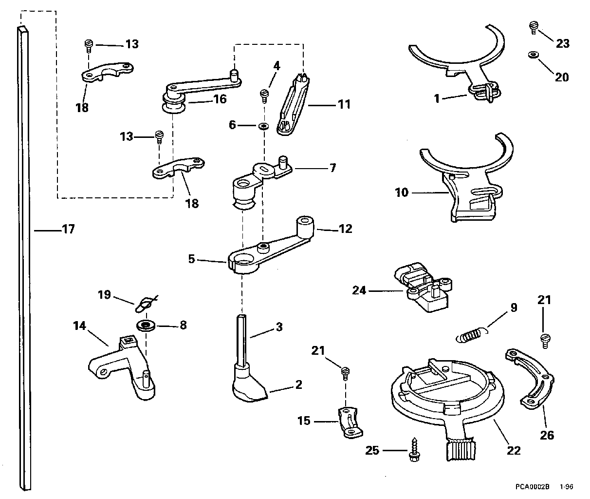 Evinrude BE150NXEDB 1996  - rottle Linkage / rottle Подъемный механизм
