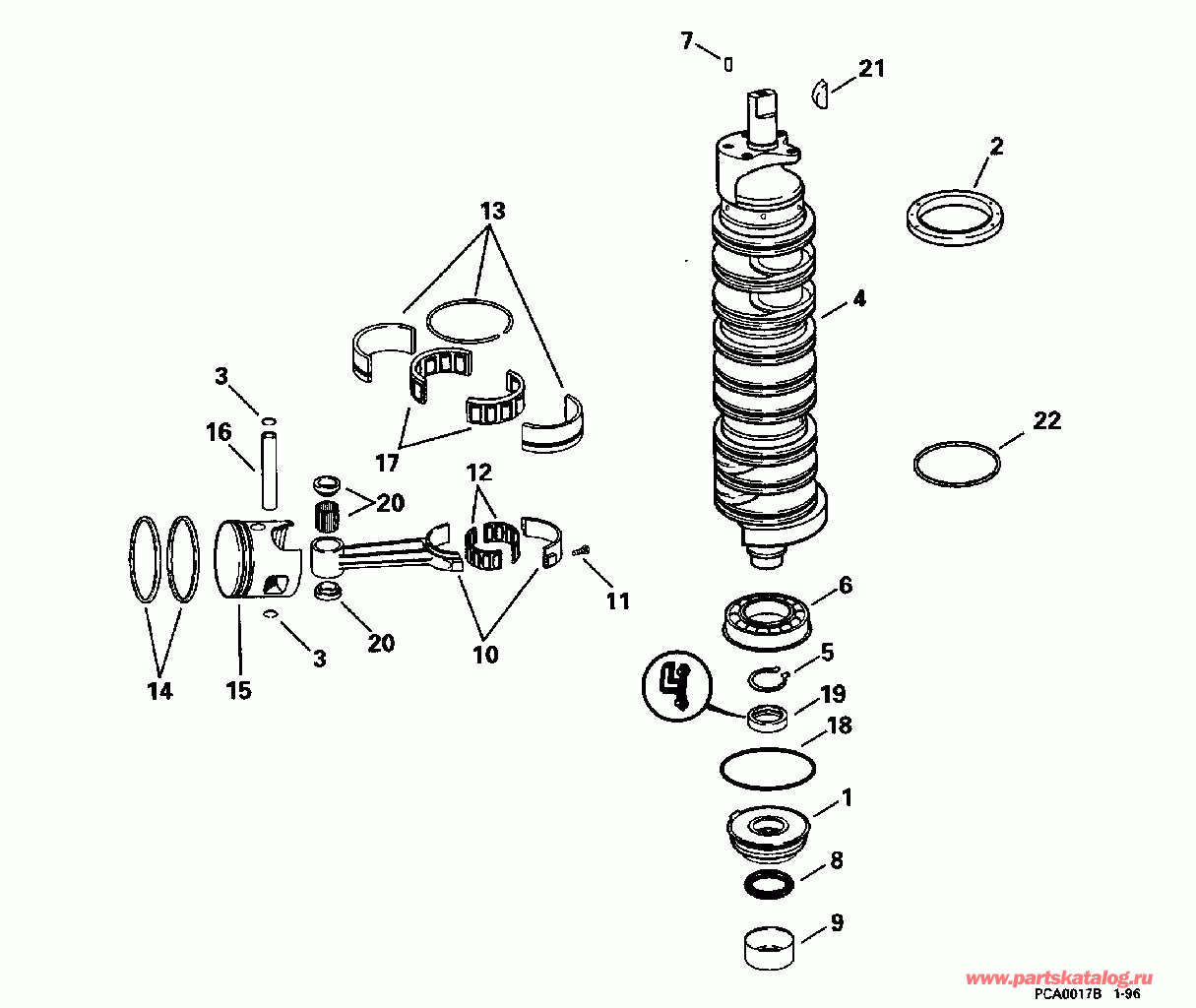 Лодочный подвесной мотор Эвинруд SE150WTPXB 1996  - ankshaft & Pistons / ankВал & Поршни
