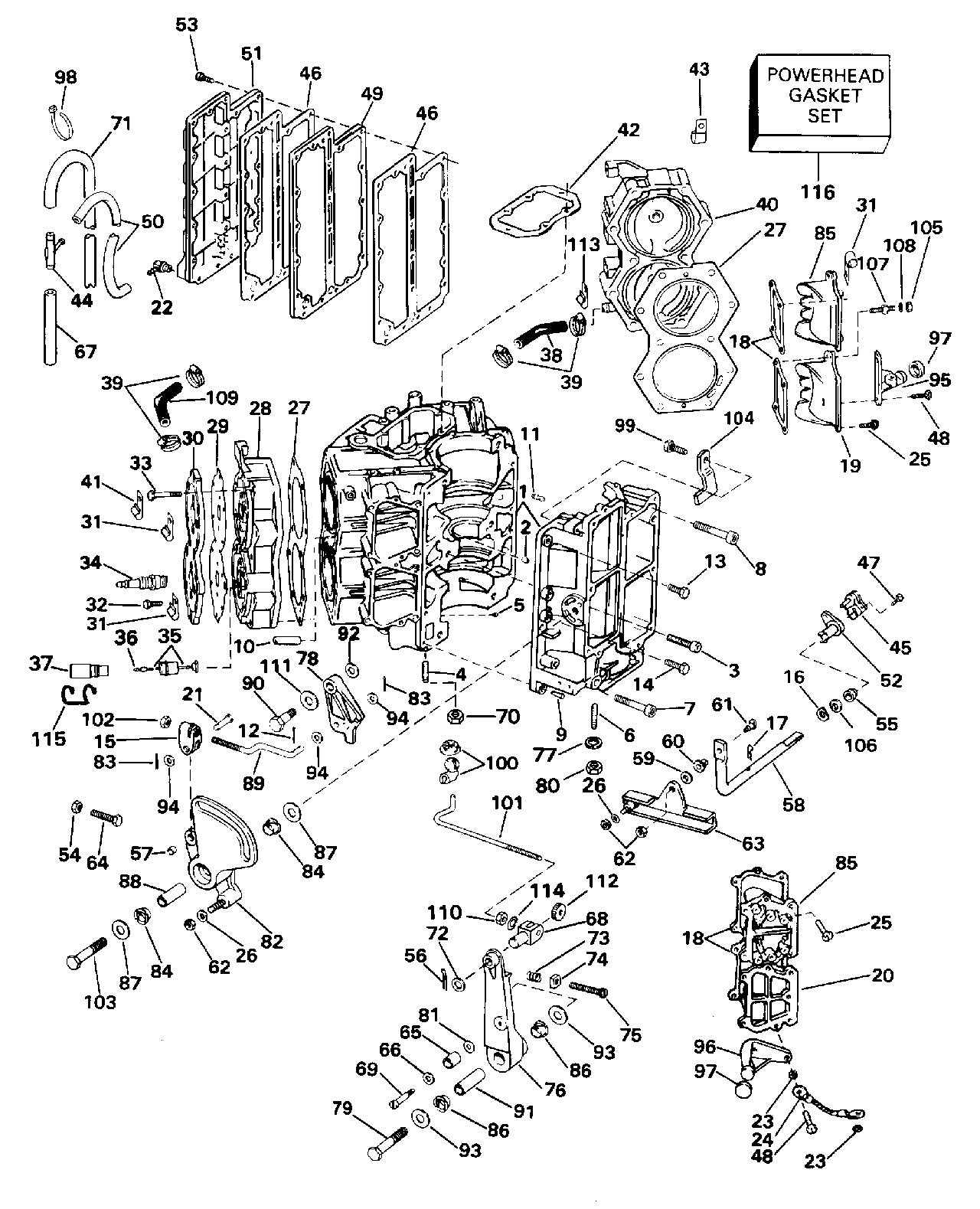Эвинруд E100WTXEDR 1996  - linder & Картер двигателя