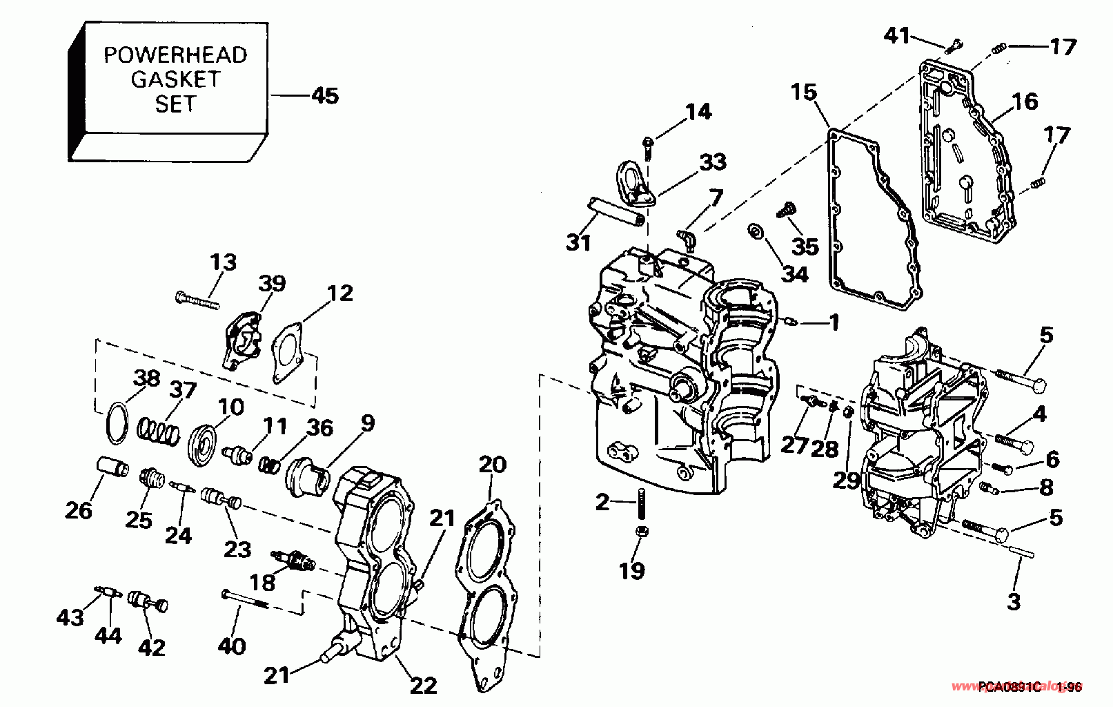 Подвесной мотор EVINRUDE E40REDS 1996  - linder & Crankcase - linder & Картер двигателя