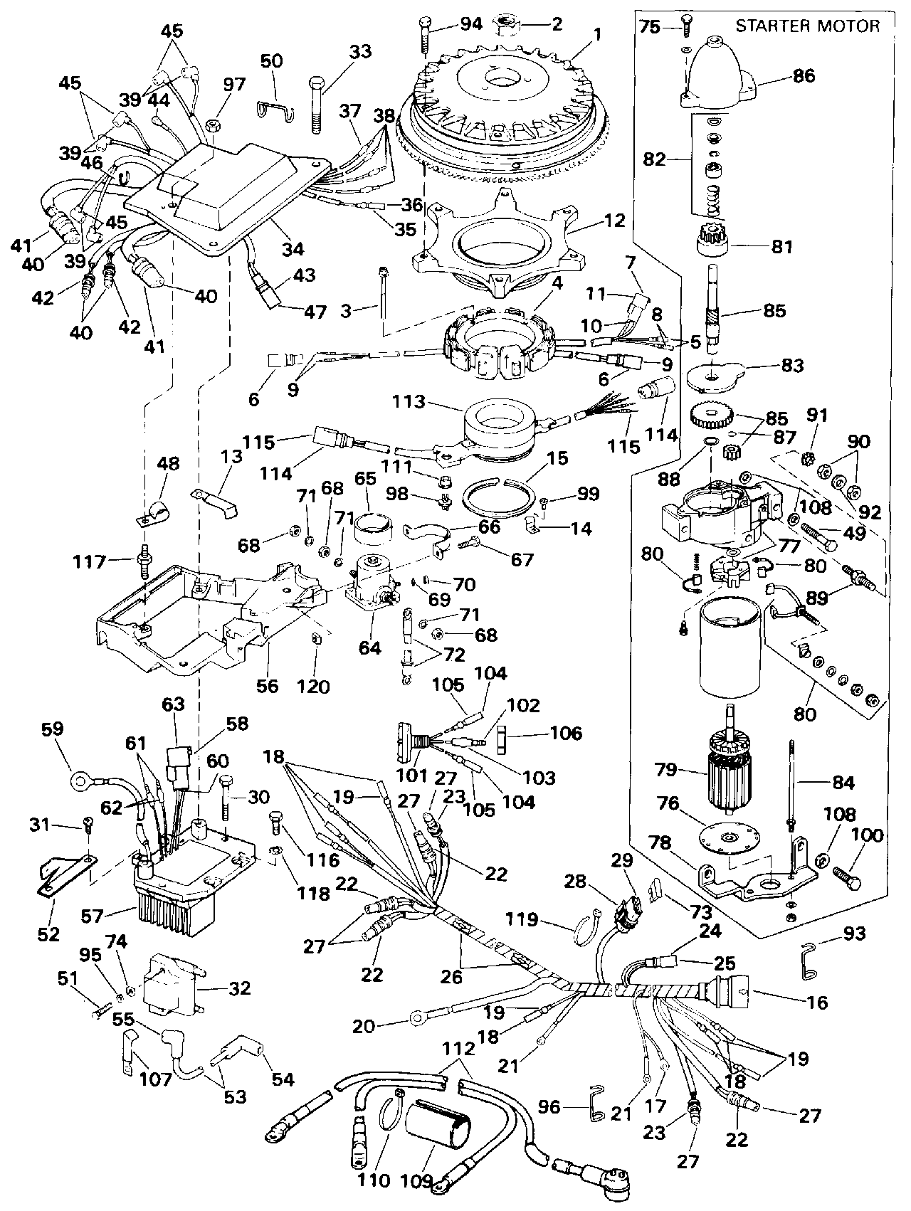Подвесной мотор Эвинруд E225CXETF 1993  - nition System & Двигатель стартера
