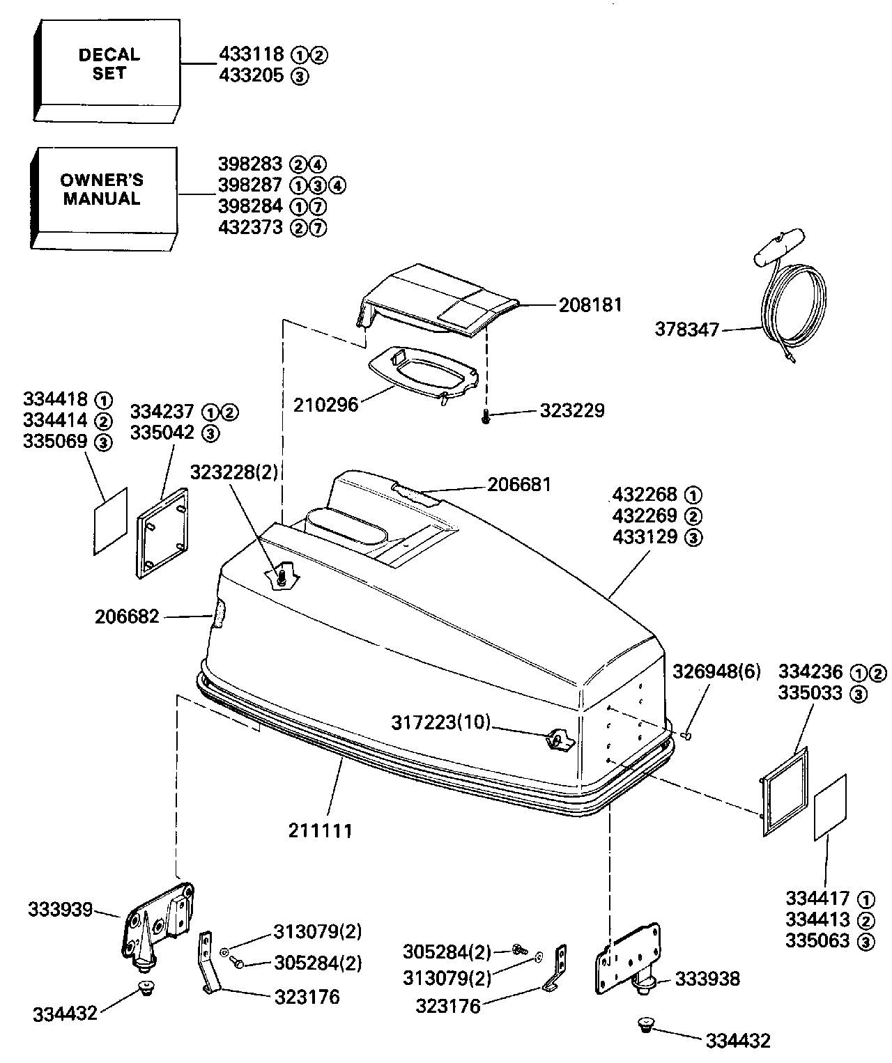 Крышка двигателя (капот) в сборе., Johnson, silver Крышка (ENGINE COVER ASSY., Johnson, silver cover)