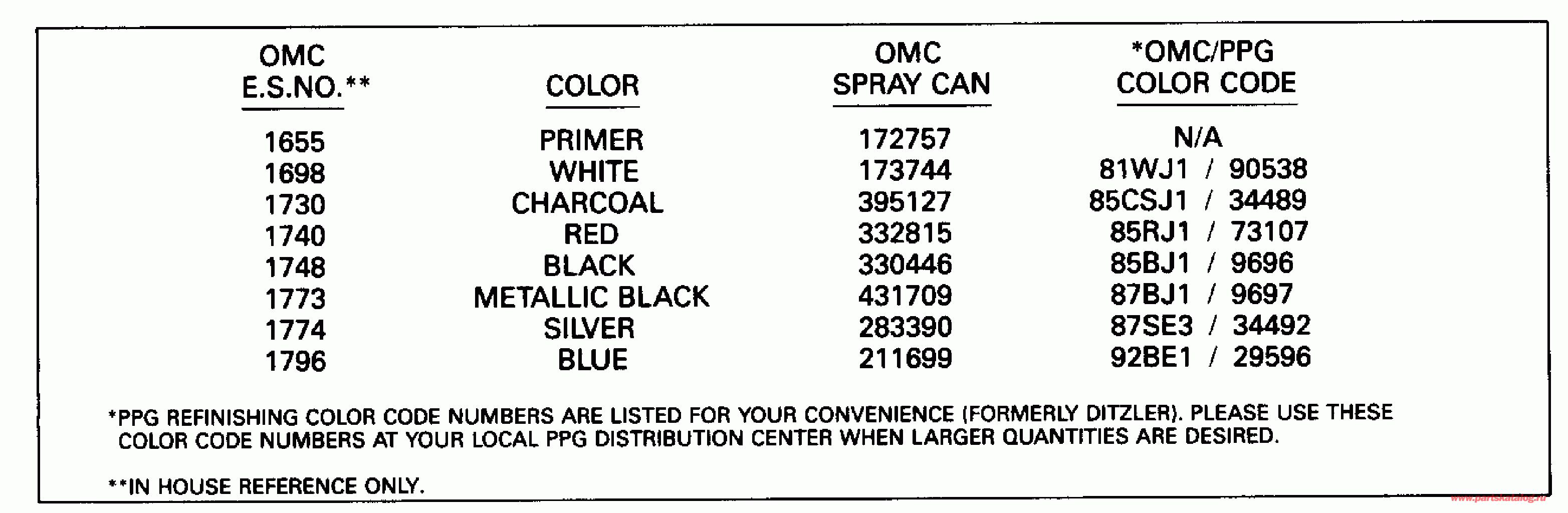 Все разделы каталога запчастей на этот двигатель вернуться к списку узлов и деталей ДЕТАЛИРОВКА ДЛЯ МОДЕЛИ: EVINRUDE E225PLENR 1992 КРАСКА CHART | PAINT CHART; ![]()