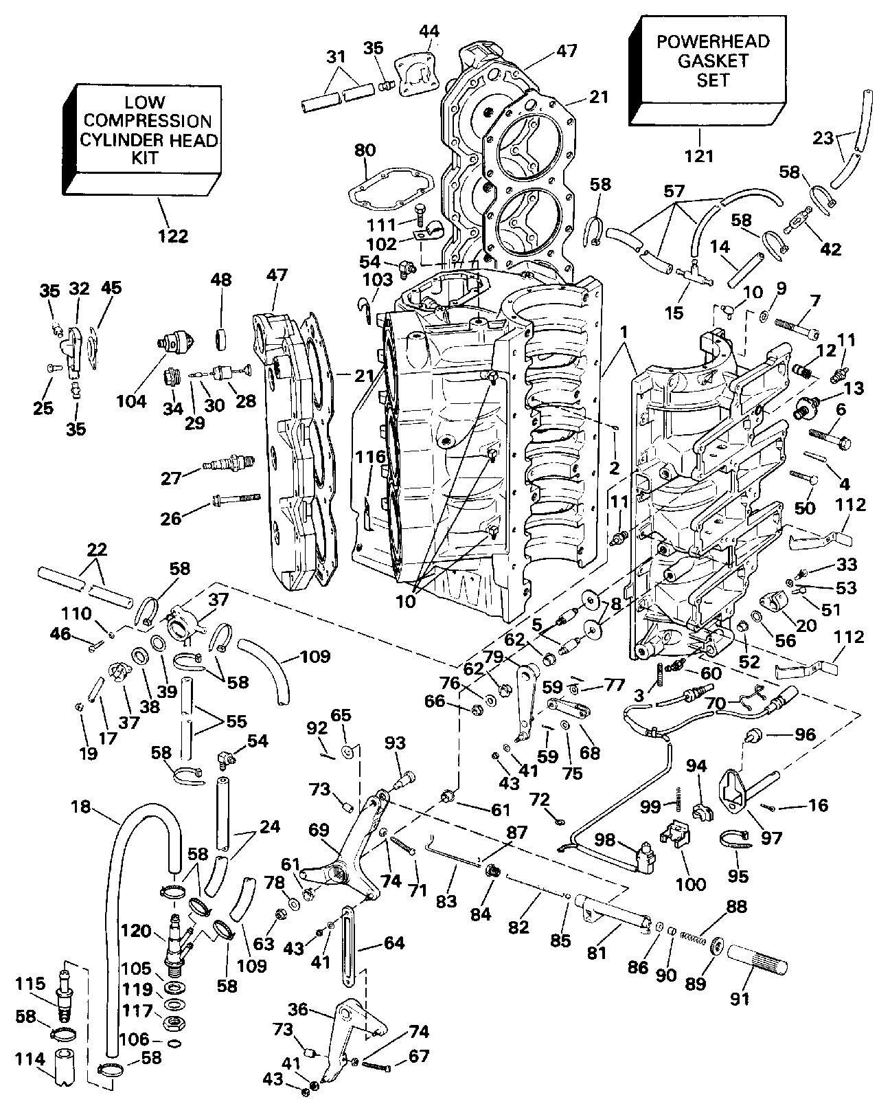Подвесной двигатель Evinrude E185ESXENR 1992  - linder & Картер двигателя - linder & Crankcase