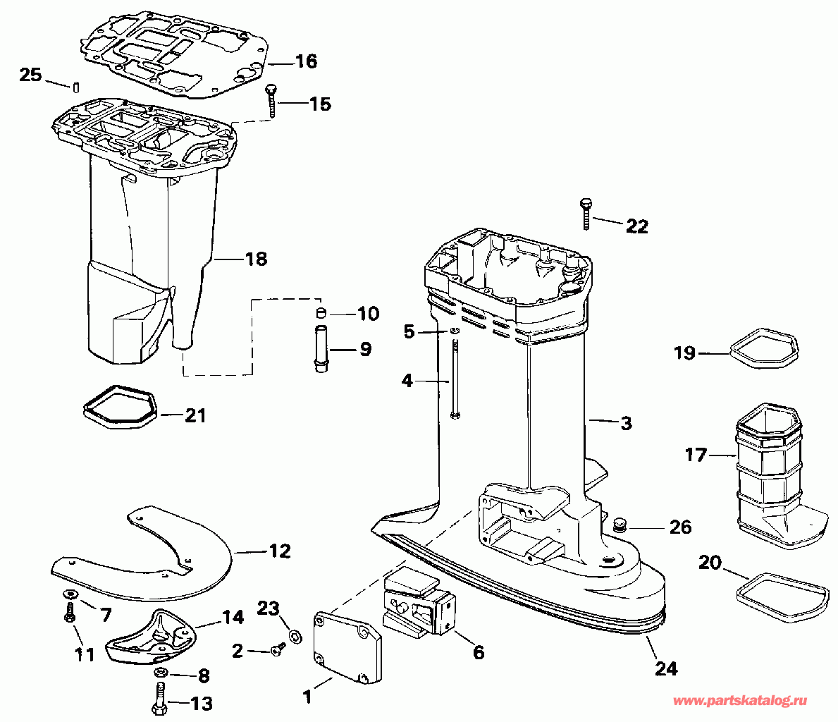 Выхлоп HSG., Inner, нижний 25 дюйм (635 мм) transom models only (EXHAUST HSG., Inner, lower. 25 in. (635mm) transom models only)