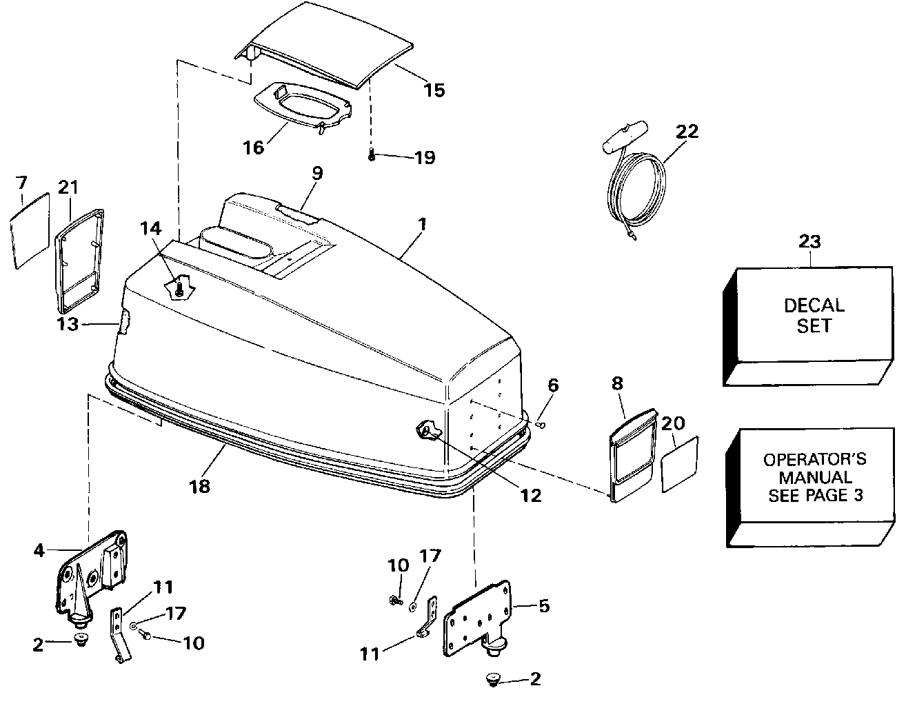 КРЫШКА ДВИГАТЕЛЯ (КАПОТ) - JOHNSON 50 | ENGINE COVER - JOHNSON 50;