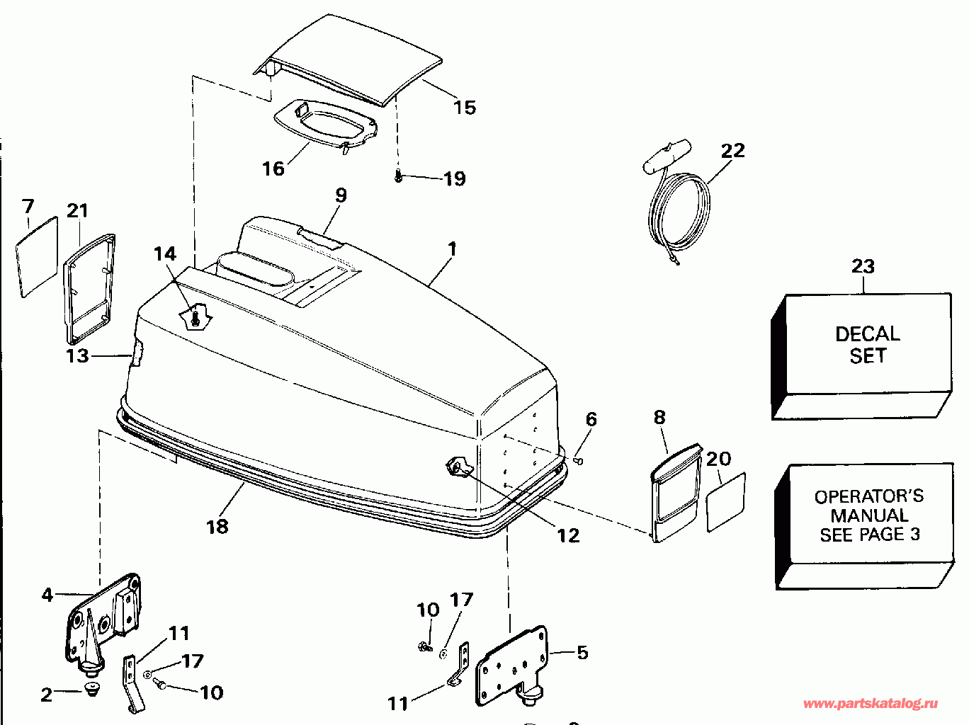 КРЫШКА ДВИГАТЕЛЯ (КАПОТ) - JOHNSON 25-40 | ENGINE COVER - JOHNSON 25-40;