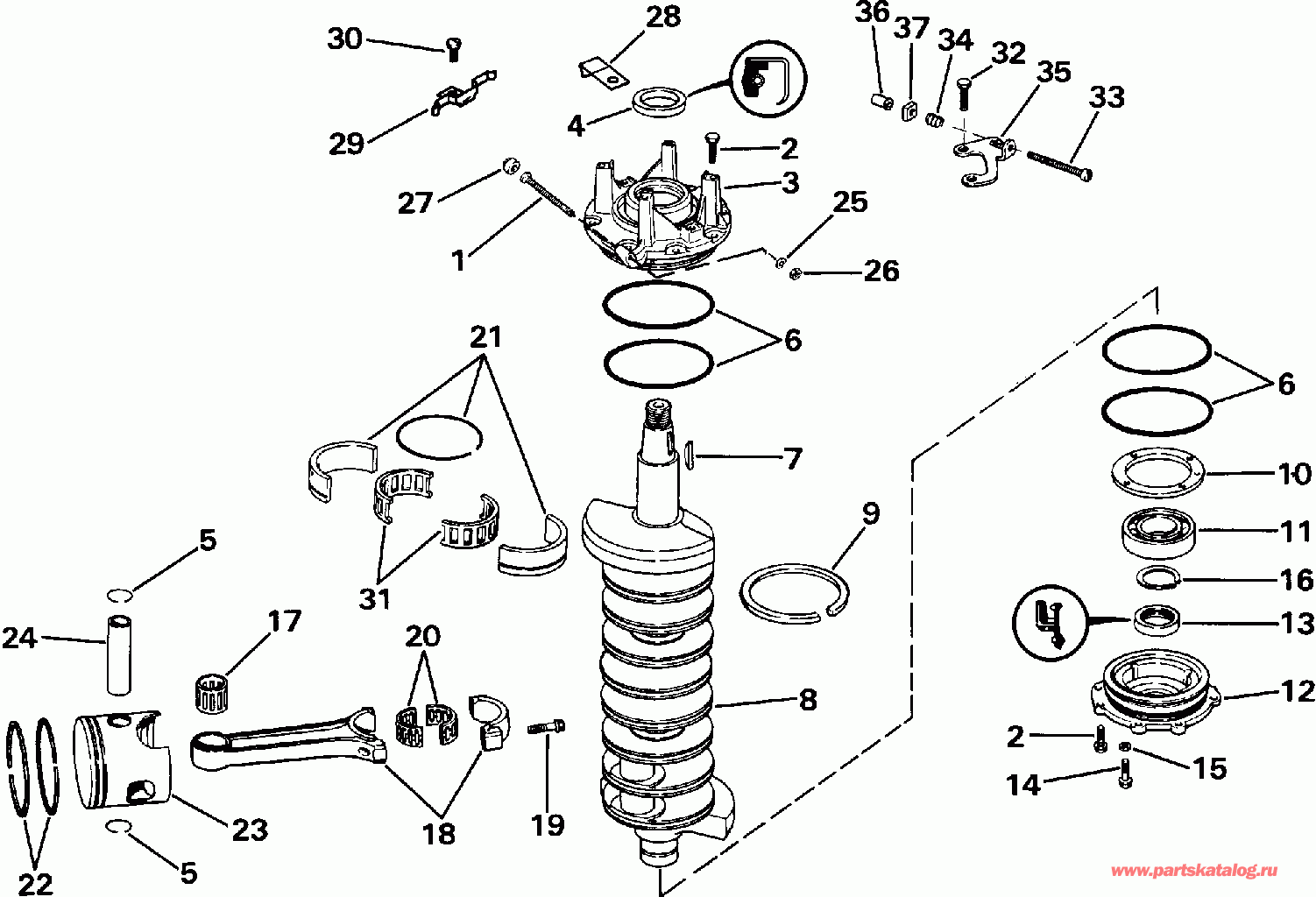Evinrude VE200TXEIB 1991  - ankshaft & Piston - ankВал & Поршень