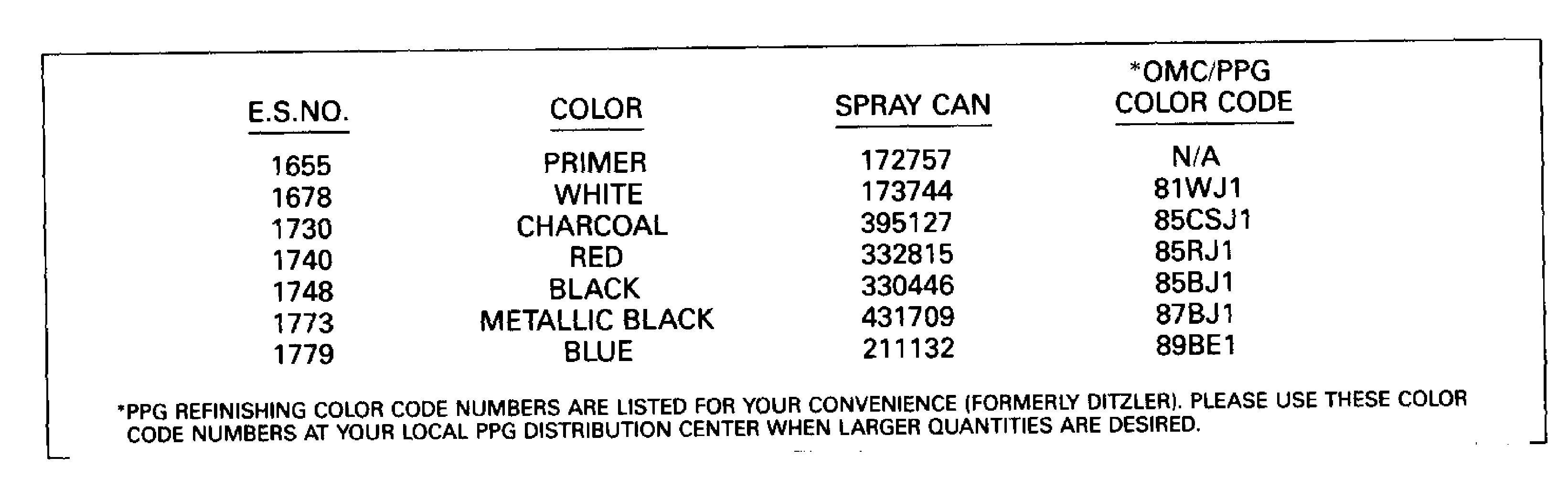 Все разделы каталога запчастей на этот двигатель вернуться к списку узлов и деталей ДЕТАЛИРОВКА ДЛЯ МОДЕЛИ: EVINRUDE E40RLESR 1990 КРАСКА CHART | PAINT CHART; ![]()