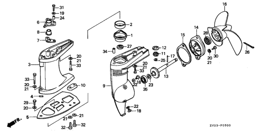 Модификация Вашего двигателя: Honda BF2AM LD Вернуться к выбору узлов мотора Картер коробки передач / Вал гребного винта |