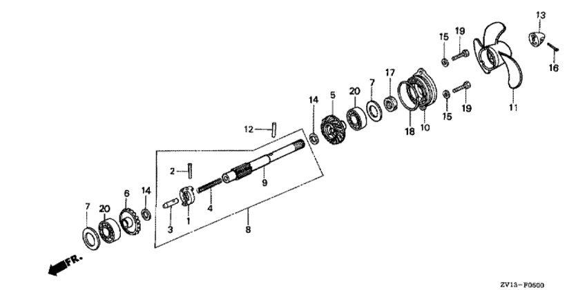 | 9 | 41161-ZV1-300 | Вал гребного винта (Shaft, propeller) | под заказ | 20310 руб. | |
