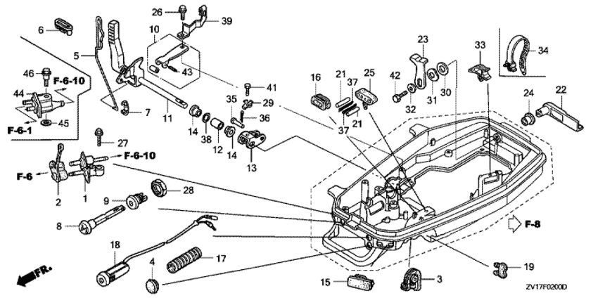 Модификация Вашего двигателя: Honda BF5A2 SC Вернуться к выбору узлов мотора Переключающий вал / Крышка рычага блокировки |