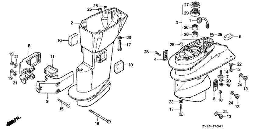 Модификация Вашего двигателя: Honda BF8AX SD Вернуться к выбору узлов мотора Удлинение корпуса / Картер коробки передач (bf8c / cx) |