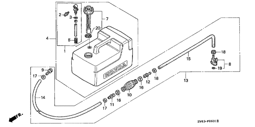 Модификация Вашего двигателя: Honda BF8BX SGD Вернуться к выбору узлов мотора Топливный бак (2) |