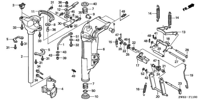 | 24 | 50526-ZV4-000 | Кронштейн вала наклона двигателя (Bracket, tilt shaft) | под заказ | 1320 руб. | |