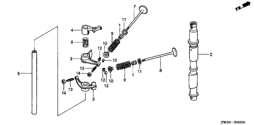 | 5 | 14461-ZW9-000 | Вал коромысла (Shaft, rocker arm) | под заказ | 2720 руб. | |