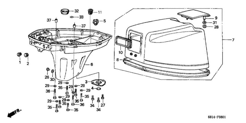 Модификация Вашего двигателя: Honda BF100E SC Вернуться к выбору узлов мотора Масляный картер / Крышка двигателя (капот) (2) |