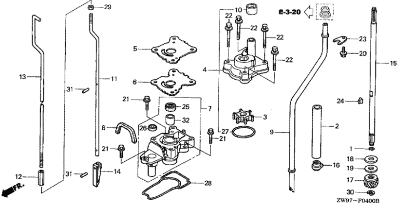 Модификация Вашего двигателя: Honda BF10B2 SHG Вернуться к выбору узлов мотора Водяной насос / Вертикальный вал (l,s size) |