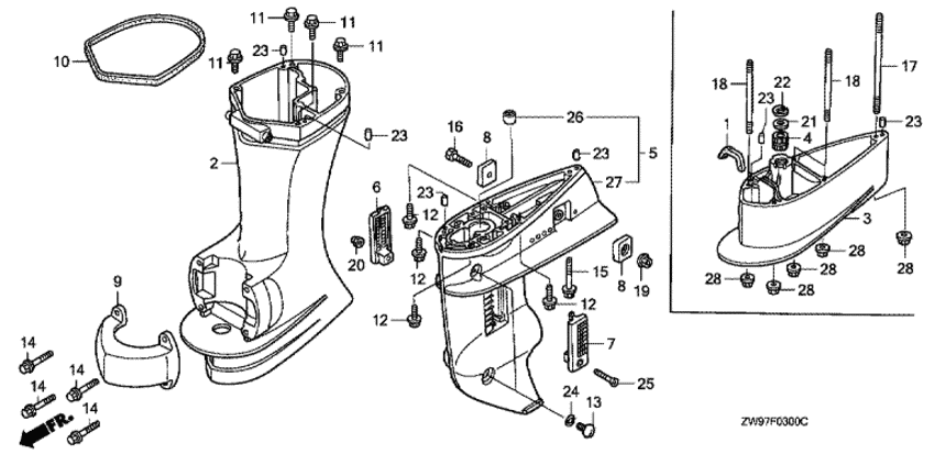 Модификация Вашего двигателя: Honda BFP10D2 LRE; Power Thrust Вернуться к выбору узлов мотора Картер коробки передач / Удлинение корпуса |