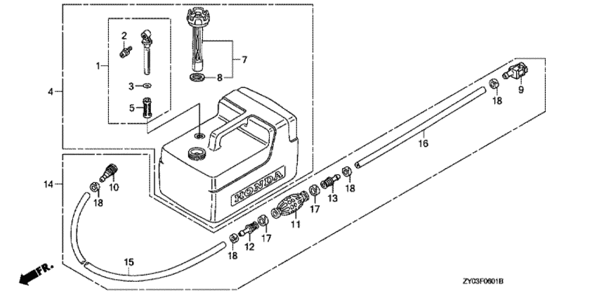 | 14 | 17700-ZW9-020 | Трубка для подключения топливного бака, в сборе (Tube assy., fuel) | под заказ | 14840 руб. | |
