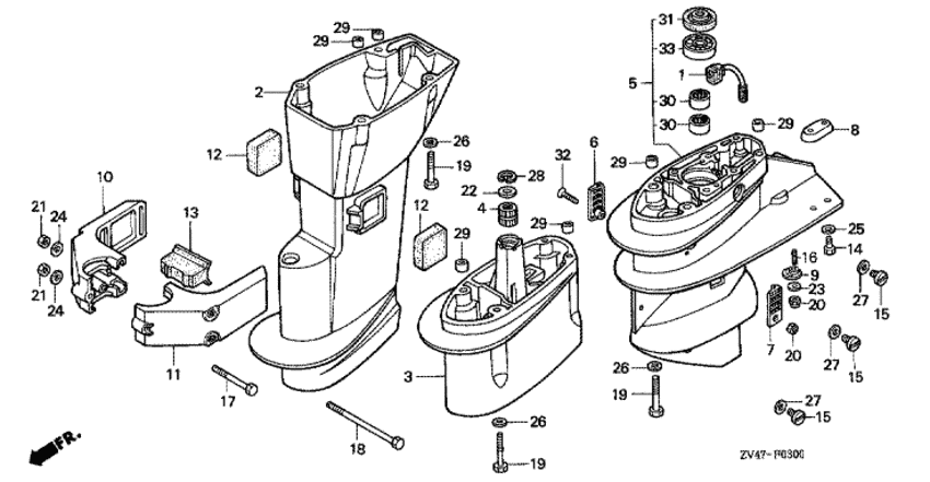 Модификация Вашего двигателя: Honda BF15AX SB Вернуться к выбору узлов мотора Картер коробки передач / Удлинение корпуса |