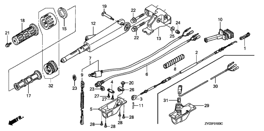 | 32 | 53130-ZW9-000 | Рукоятка в сборе, контроль дросселя (Grip assy., throttle friction) | 1 шт | 5040 руб. | |