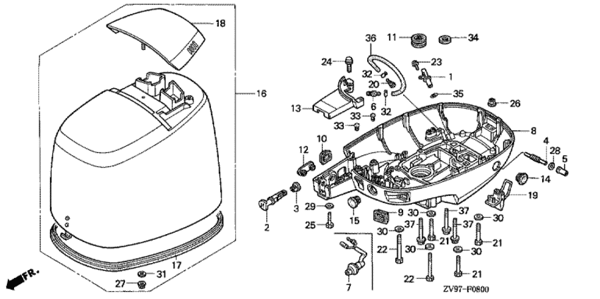 Модификация Вашего двигателя: Honda BF30A2 SRSD Вернуться к выбору узлов мотора Крышка двигателя (капот) |