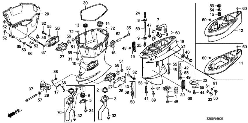 | 30 | 63702-ZV5-000 | Резинка нижней части корпуса (Rubber, under cover) | 1 шт | 1410 руб. | |