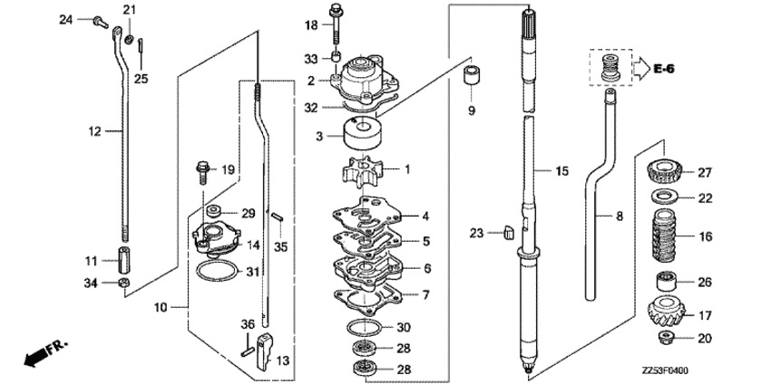 Модификация Вашего двигателя: Honda BF50D EFI; XHD Вернуться к выбору узлов мотора Водяной насос |