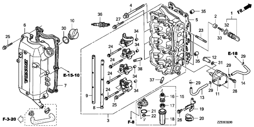 Модификация Вашего двигателя: Honda BF50D EFI; SRYU Вернуться к выбору узлов мотора Головка блока цилиндра |