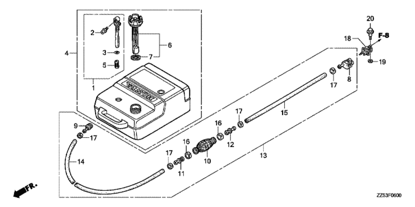 | 13 | 17700-ZW9-030 | Трубка для подключения топливного бака, в сборе (Tube assy., fuel) | под заказ | 14840 руб. | |