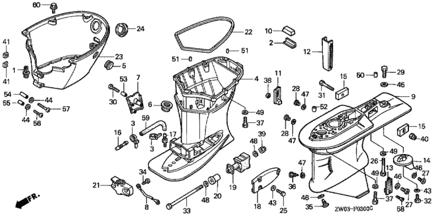 Модификация Вашего двигателя: Honda BF75AT XRTC Вернуться к выбору узлов мотора Картер коробки передач / Удлинение корпуса |